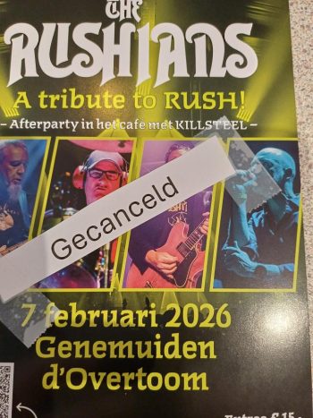 Het concert van de Rush tribute band, The Rushians, in de Overtoom op 7 februari zouden geven wordt uitgesteld. Bij een fietsongeluk heeft zanger Erik Masselink verwondingen opgelopen die zeker 6 weken herstel vergen. In overleg met alle betrokken, bands, zaal en geluidsbedrijf wordt er gezocht naar een nieuwe datum. De kaarten blijven geldig. ... [...]
