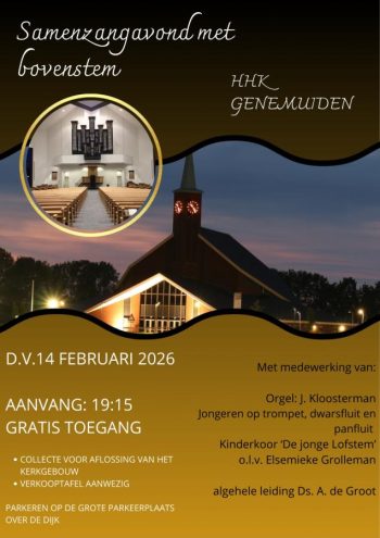 Van harte welkom op de zangavond met bovenstem in de HHK Genemuiden. Een avond waarin we psalmen zingen met bovenstem. Daarnaast kunt u genieten van mooie orgelklanken. Ook klinken er mooie stemmen vanuit het kinderdoor en zullen verschillende jongeren met hun muziekinstrument een bijdrage leveren. Aansluitend is er gelegenheid tot ... [...]