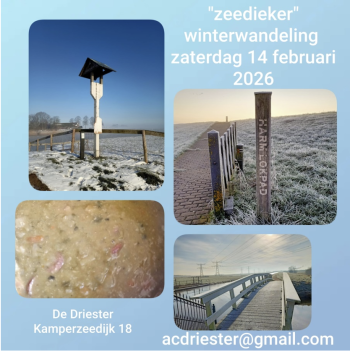 Sta vroeg op, pak je dik in en maak een heerlijke winterwandeling. De activiteitencommissie van De Driester organiseert voor de 7e keer een winterwandeling. Deze wandeling wordt gehouden op zaterdag 14 februari 2026. Dit jaar zijn er weer 4 routes uitgezet van 5, 10, 15 en 20 km. Starten: 5 km – Starten tussen 10.30 en 11.00 uur ... [...]
