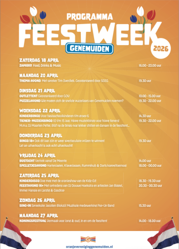Programma feestweek Oranjevereniging in Genemuiden is bekend