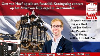 Koningsdag wordt dit jaar extra feestelijk in Genemuiden. Terwijl heel Nederland de verjaardag van Koning Willem-Alexander viert, trakteert Stichting Orgelcomité Genemuiden u op een bijzonder muzikaal hoogtepunt. Op 27 april 2026 om 16.00 uur klinkt in de Grote Kerk een bruisend Oranjeconcert, verzorgd door niemand minder dan Gert van Hoef (1994) ... [...]