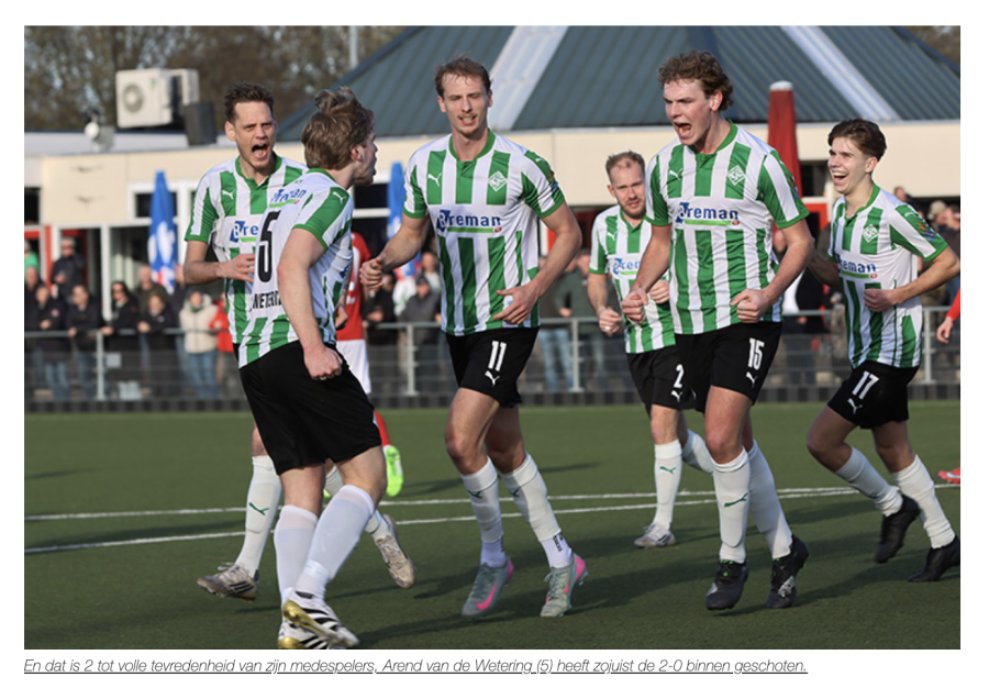 Scoreverloop: 10. Niels Grevink 0-1, 35. Arend van de Wetering 0-2, 43. Niels Grevink 0-3.