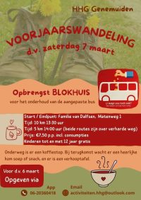 Op D.V. zaterdag 7 maart wordt er een winterwandeling georganiseerd, waarvan de opbrengst dit keer bestemd is voor het Blokhuis. Dit voor het onderhoud aan de aangepaste bus. De wandeling start vanaf familie Van Dalfsen, Matenweg 1, te Genemuiden. Dit jaar kunnen er twee routes gelopen worden. 10 km met een starttijd van 13:30 uur en 5 km met een ... [...]