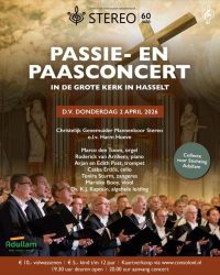 Het Genemuider mannenkoor Stereo organiseert donderdagavond 2 april een passie- en paasconcert in de Grote Kerk van Hasselt. Het mannenkoor zal verschillende bekende werken ten gehore brengen en wordt begeleid door diverse musici, waaronder Marco den Toom (orgel), Roderick van Arnhem (piano) en Marieke Booy (viool). Daarnaast werkt ook zangeres ... [...]