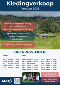 GENEMUIDEN/IJSSELMUIDEN – Op 25 maart om 9.00 uur gaat de 'MAF-winkel' aan de Oosterholtseweg 20a in IJsselmuiden weer open. Een grote voorraad kinder- en dames(merk)kleding, nieuw en gebruikt, wordt in de gezellig ingerichte winkel tegen zeer aantrekkelijke prijzen aangeboden. De openingstijden zijn te vinden op www.maf.nl/paas. Iedereen ... [...]