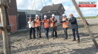 Eerste paal geslagen met 6 personen bij Bouwlocatie Installatiebedrijf T. Breman in Genemuiden