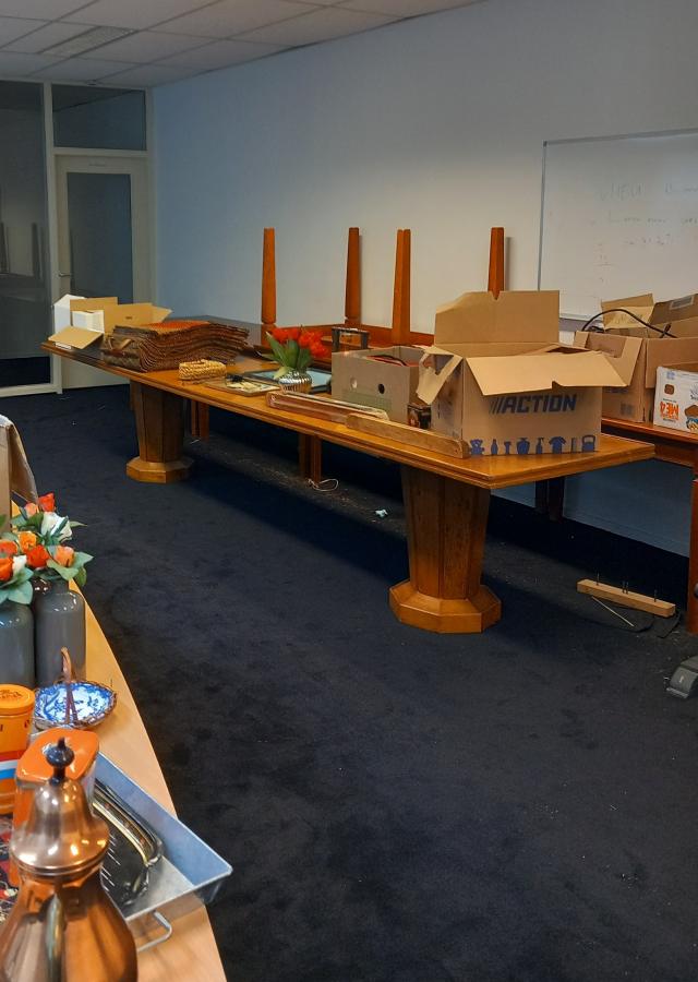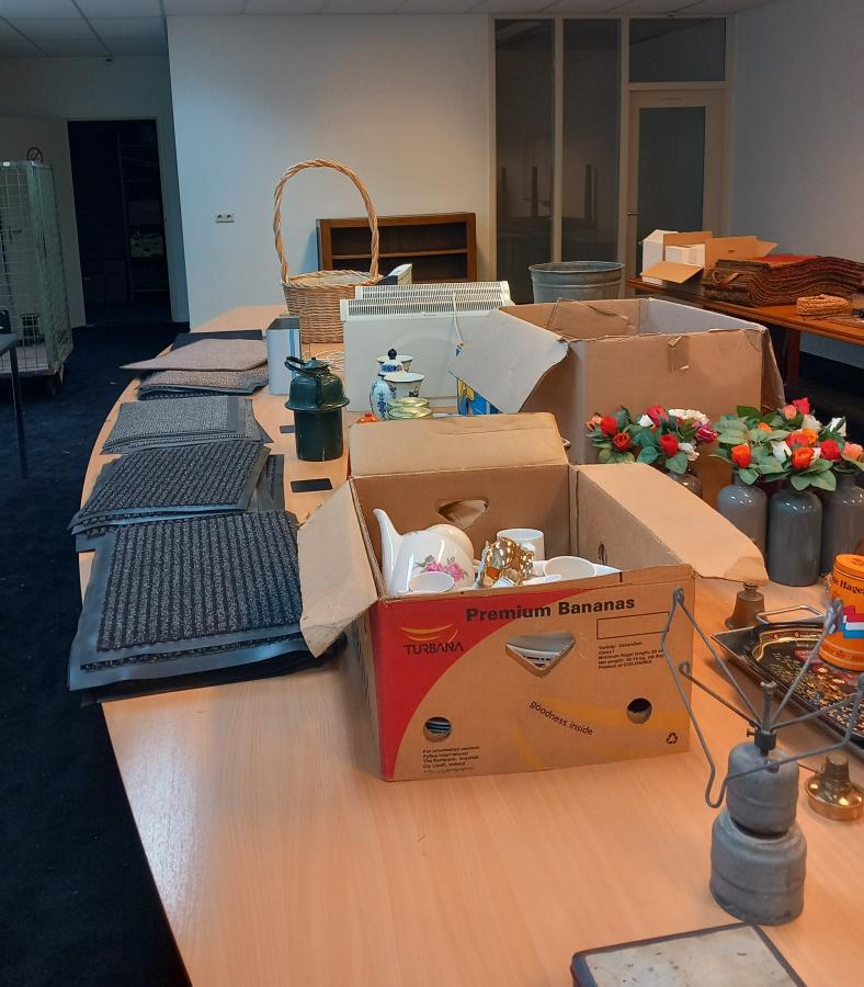 Voor beroepskracht Joukje van Dalfzen en de vrijwilligers is het echte museumwerk nu begonnen terwijl er ook nog opruimingswerkzaamheden uitgevoerd moeten worden. Na de herinrichting van het museum zijn veel materialen en voorwerpen uit het “oude” museum overgebleven. Die krijgen geen plek meer in het vernieuwde museum. Het Tapijtmuseum kan voor de opslag hiervan dankbaar gebruik maken van ruimten van COTAP en van United Works in het voormalige EDEL-kantoor. Deze ruimten worden nu leeggemaakt: lampen, matten, houten tafels, klossen garen, spoelen enzovoort, zijn voor weggeefprijzen te koop.