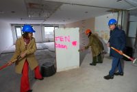Bestuurders Sophie Keulemans-ter Kuile en Egbert den Engelsman van IJsselheem en Claudi Groothuis van Groothuis Bouwgroep trapten dinsdagmiddag de vernieuwing af van het bewonersdeel van De Meente. Ze braken met een sloophamer het laatste muurtje af dat na de sloopperiode nog overeind stond. Groothuis Bouwgroep begon in opdracht van IJsselheem in ... [...]
