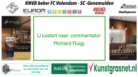 Vanavond speelt SC Genemuiden uit tegen FC Volendam voor de KNVB Beker. De wedstrijd wordt uitgezonden door ESPN 4, dat betekent dat wij geen beelden mogen uitzenden. Alleen de wedstrijd wordt als radioverslag uitgezonden (indien mogelijk ). Ook omdat niet iedereen ESPN4 heeft. Na het fluitsignaal is nog niks zeker wat we mogen doen, wel ... [...]