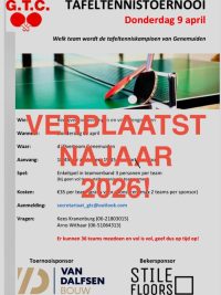 Helaas kan ons toernooi niet doorgaan 9 april. We gaan dit verplaatsen naar het najaar van 2026. We vieren dit dan samen met ons 60 jarig bestaan. ... [...]