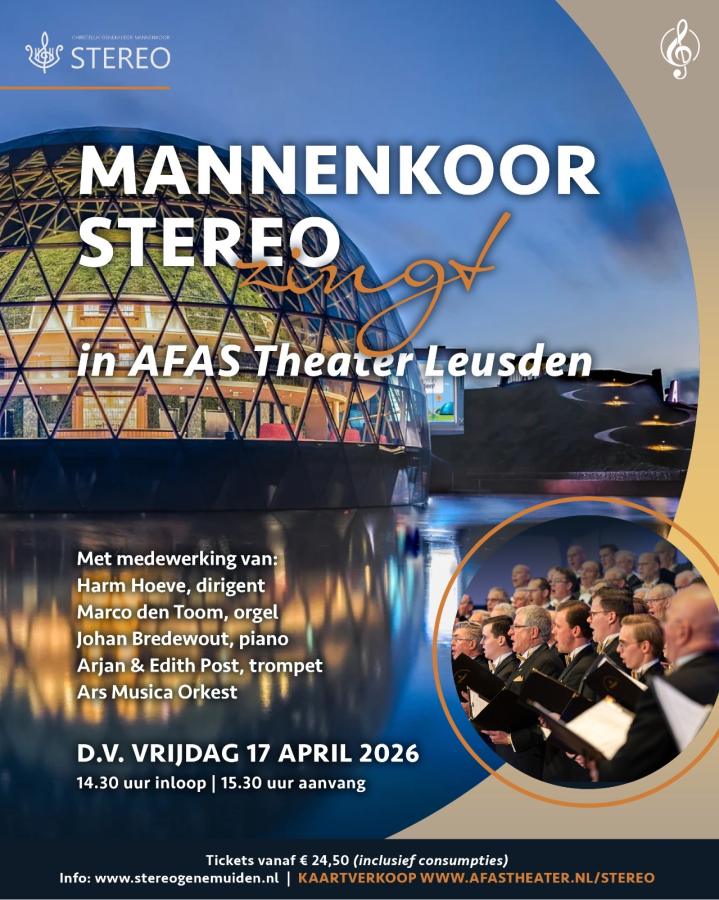 Chr. Genemuider Mannenkoor Stereo biedt een Grote Gezinnen Voordeel: boek vandaag tickets voor het hele gezin en betaal alleen voor de volwassenen! Kinderen (tot 17 jaar) gaan gratis mee naar het middagconcert op vrijdag 17 april. Inbegrepen: toegang tot het concert (15.30-17.30 uur, incl. 25 min. pauze), koor, orkest, professionele musici, alle consumpties en parkeren onder het theater. Beperkt aantal kaarten beschikbaar. Meer info? Mail secretaris@mannenkoorstereo.nl of app 06-24669445.