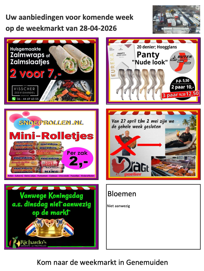 Elke week, rond het weekend zullen de marktlieden hun aanbiedingen kenbaar maken.