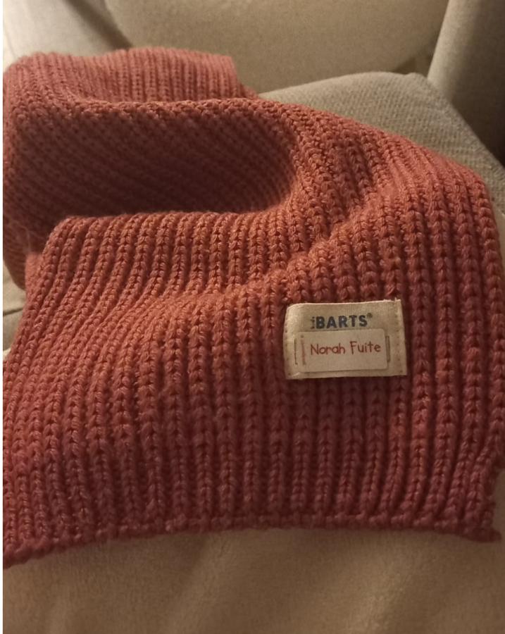 Gevonden sjaal van Barts vlakbij de Bethelkerk staat naam Norah Fuite op.