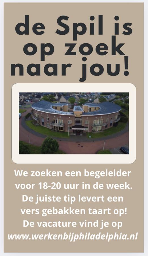 Door allerlei omstandigheden is het de Spil nog steeds niet gelukt die ene collega te vinden, die ons team weer compleet maakt. We zijn dringend op zoek! Ken jij een zorgend iemand die graag in Genemuiden aan de slag wil?
