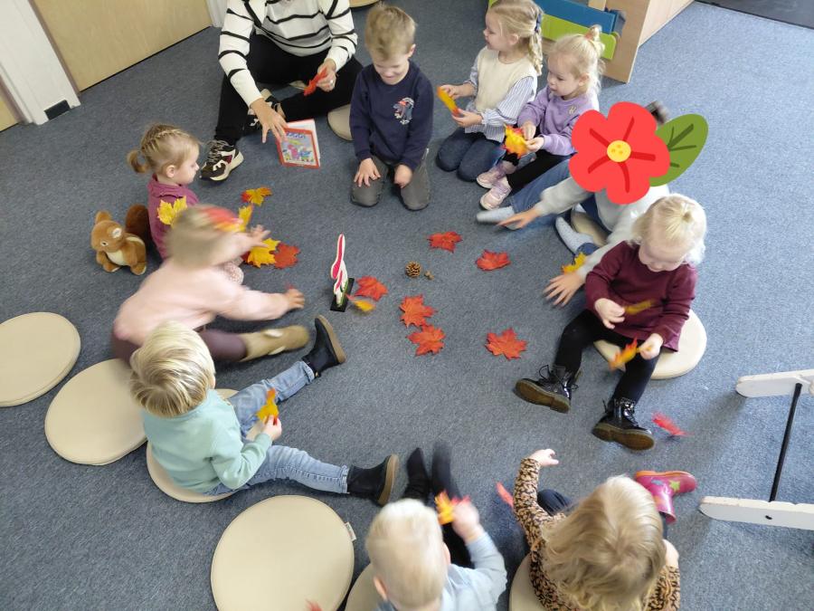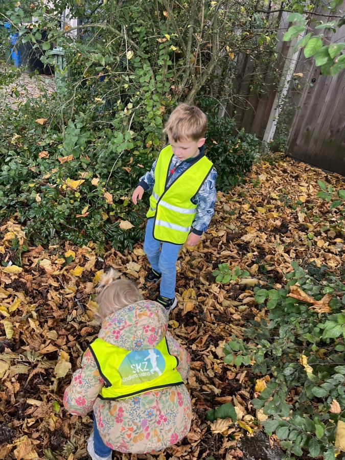 Op ons groene plein kunnen we de herfst goed ervaren. Er is veel (héél veel!) blad om samen op te vegen en de blaadjes aan de struiken verkleuren mooi. Maar we gaan zeker ook samen op pad; we wandelen naar de speeltuin in de buurt, gaan met onze fietstaxi de GoCab naar het park waar we samen op zoek gaan naar mooie blaadjes, prikkelige bolsters, kastanjes en andere herfstschatten!