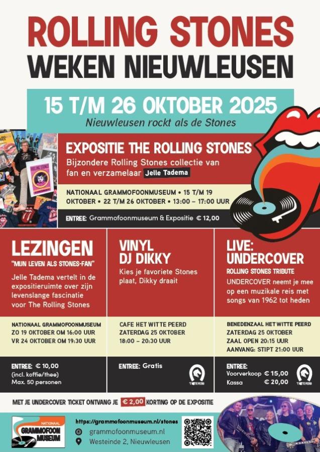 Van woensdag 15 t/m zondag 26 oktober 2025 rockt Nieuwleusen! Het Nationaal Grammofoonmuseum organiseert in samenwerking met Partycentrum Het Witte Peerd de “Rolling Stones weken Nieuwleusen.” Mis dit unieke eerbetoon aan de Stones niet. Met de Rolling Stones weken hoopt het Grammofoonmuseum fans aan te trekken uit het hele land.