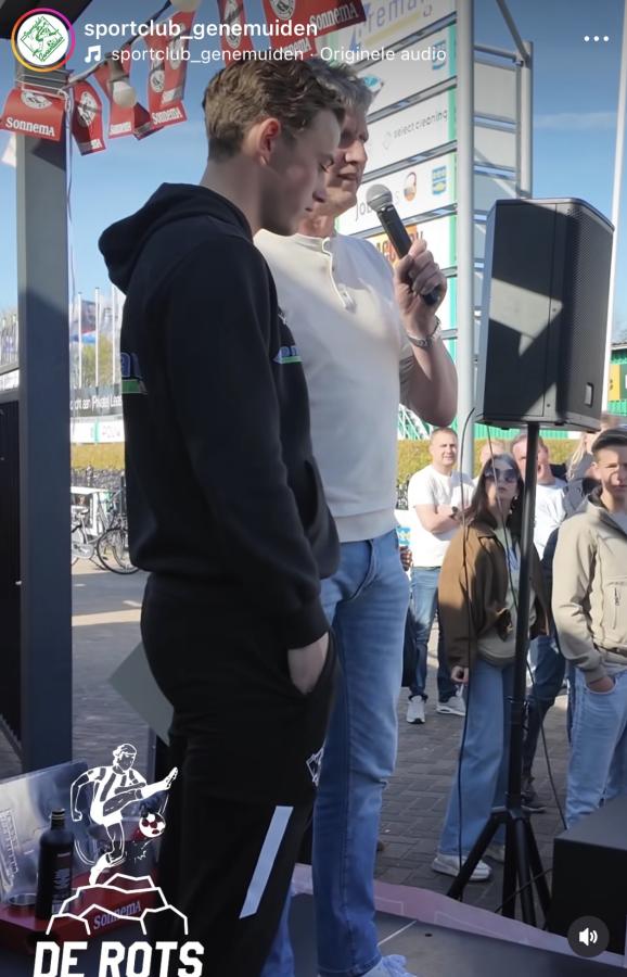 Op een bomvol plein voor de kantine werd hij naar voren geroepen π€ Onder luid applaus van supporters, teamgenoten en clubmensen π kreeg hij het felbegeerde rotsje uit handen van voorzitter Luuk Drost π€ Gewoon buiten, midden tussen iedereen β precies zoals het hoort π―