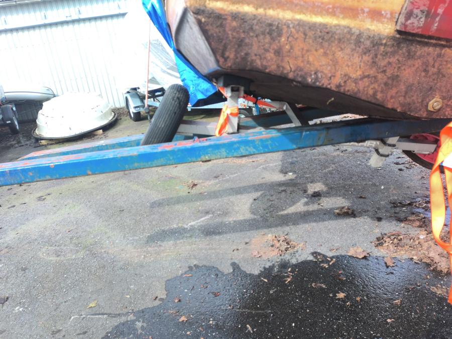 Vol met water volledig door zijn assen gezakt en alles is krom.