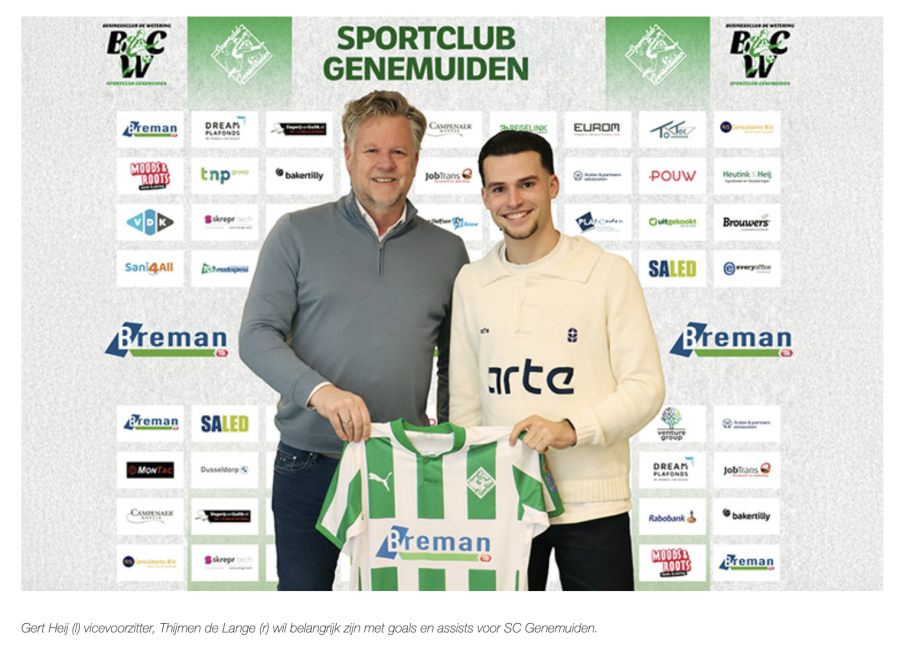 GENEMUIDEN- De 22-jarige Thijmen de Lange uit Ommen is een ambitieuze en veelzijdige aanwinst voor Sportclub Genemuiden. Met zijn creativiteit, energie en aanvallende impulsen hoopt hij zich snel onmisbaar te maken binnen het team. Naast zijn voetbalcarrière is De Lange druk met zijn studie International Business Administration aan de Universiteit Twente in Enschede. Daar werkt hij ook als sales specialist bij KPN in een callcenter, waardoor hij studie, werk en topsport knap weet te combineren.