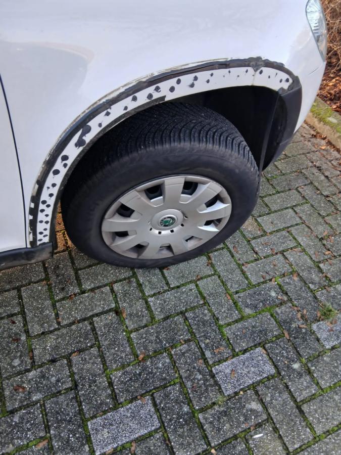 Deze auto is beschadigd op de parkeerplaats van AH in Genemuiden.