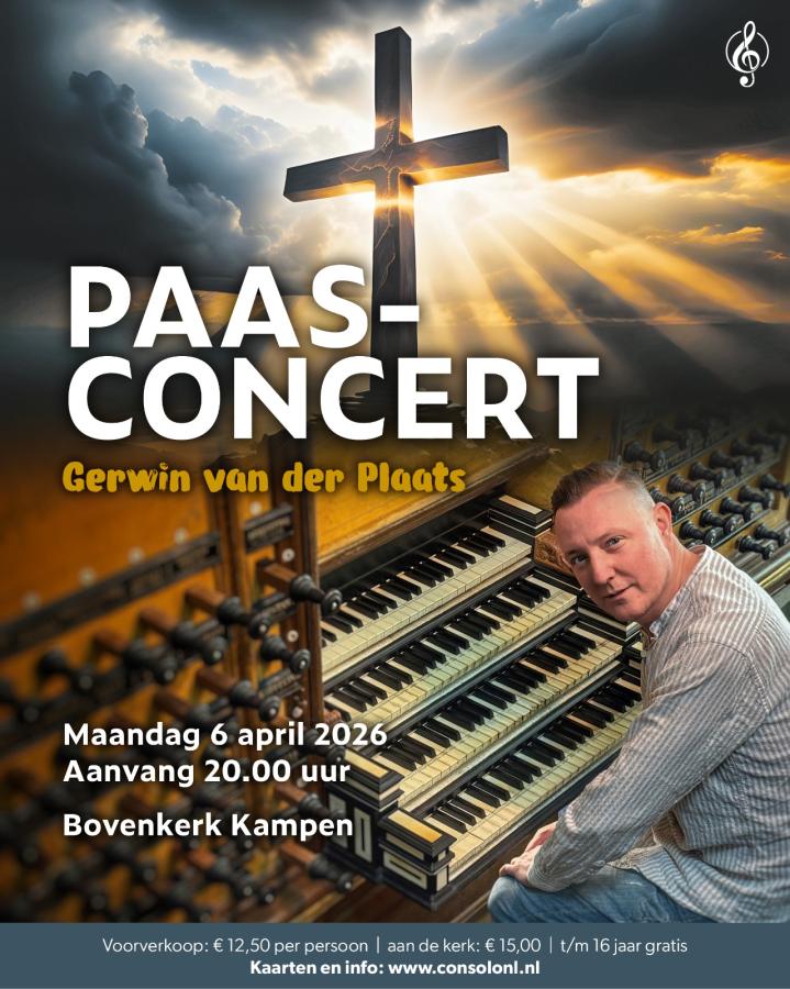 Organist Gerwin van der Plaats houdt maandagavond 6 april een orgelconcert rondom Pasen in de Bovenkerk van Kampen.