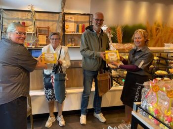 Bakkerij Slager heeft donderdag de 2 gevulde Kærebiez’n uitgedeeld en ook een heerlijke slagroomtaart.