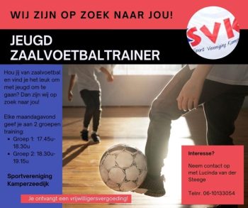 Wij zijn op zoek naar jou ! –> Jeugd zaalvoetbaltrainer