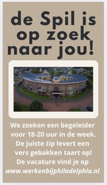 Door allerlei omstandigheden is het de Spil nog steeds niet gelukt die ene collega te vinden, die ons team weer compleet maakt. We zijn dringend op zoek! Ken jij een zorgend iemand die graag in Genemuiden aan de slag wil? Tip ons dan en wij belonen de tipgever met een persoonlijk gebakken taart!! Info : Inge.deroon@philadelphia.nl ... [...]