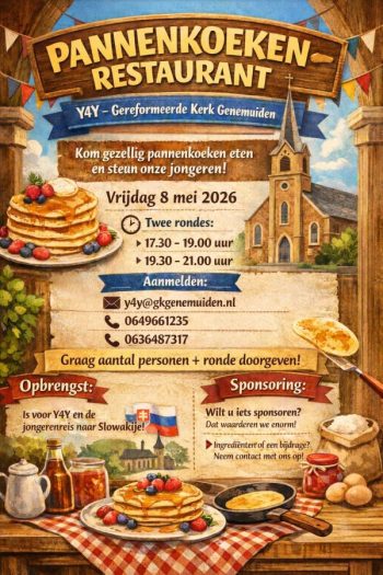 Gezellig eten met elkaar !! Je wordt bedient door de jeugd, en je kunt genieten van de pannenkoeken die ook gebakken worden door de jeugd . Iedereen is welkom !! ... [...]