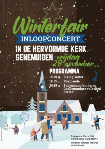 Ondertussen is het al een begrip geworden tijdens de winterfair. Het inloopconcert in de Hervormde Kerk. Vanaf 18.30 uur zijn bezoekers van harte welkom om te komen genieten, van prachtige muziek en warme kerstsferen. Dit jaar is een het een bijzondere editie, omdat we toch een mooi jubileum jaar afsluiten. Tijdens het concert treden ... [...]