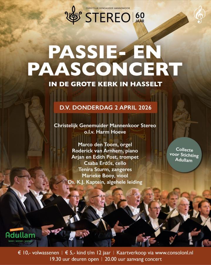 Het Genemuider mannenkoor Stereo organiseert donderdagavond 2 april een passie- en paasconcert in de Grote Kerk van Hasselt.