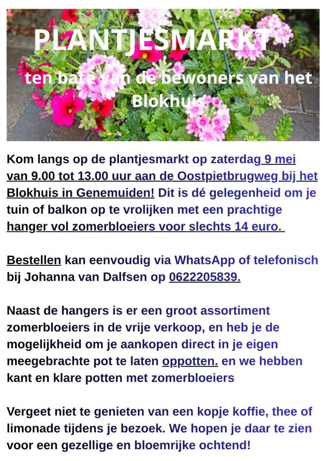 • Plantjesmarkt t.b.v. het Blokhhuis in Genemuiden