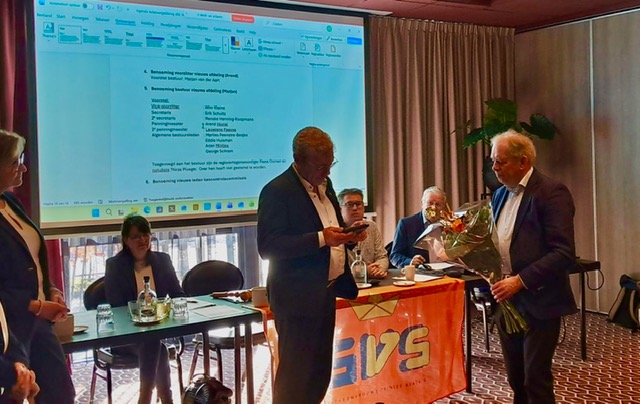 Roelof Huls werd bij zijn afscheid tijdens de vergadering unaniem benoemd tot erelid van Schuttevaer en kreeg voor dit eerbetoon van voorzitter Marjan van der Aart een bos bloemen en een koffiepakket. Hij werd toegesproken door vice voorzitter Wim Kleine met woorden van dank en memoreerde het zorgvuldige beheer van de penningen in bijna 30 jaar.