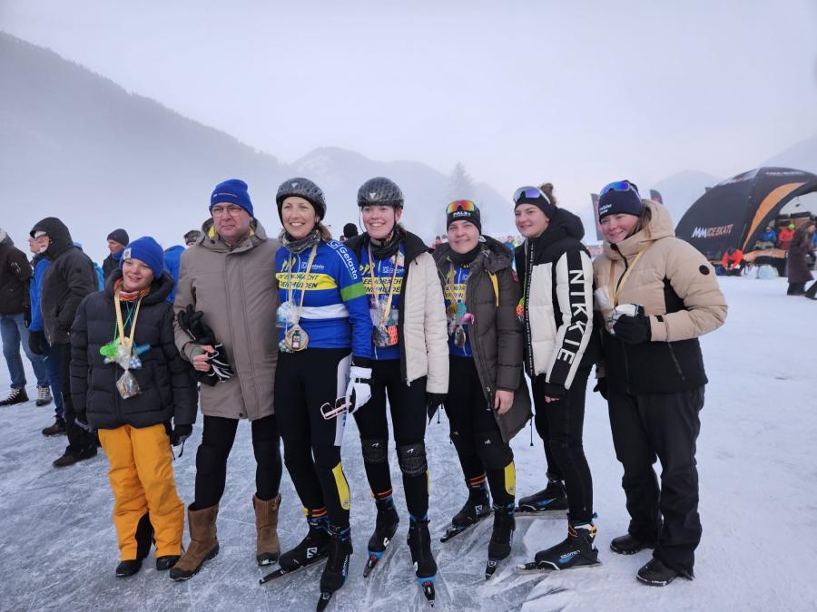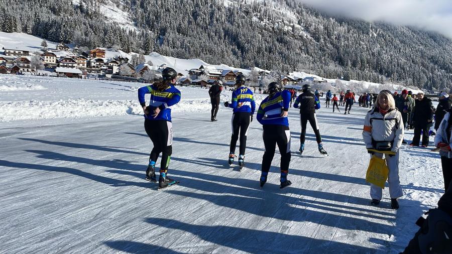 Ook dit jaar was STG de Eendracht weer actief op de Weissensee. Maandagmorgen 26 januari jl. stonden vijf rijders aan de start voor hun tocht van 200 kilometer, De Alternatieve Elfstedentocht. Het waren Anouk Heetebrij, Elieke van Lente, Trienke Visscher, Maartje van der Steeg en Erna Last. Bert-Jan en Imre van der Steeg reden deze dag de prestatietocht van 100km. Om 07.00 uur werd er gestart voor de 200km, samen met nog 850 andere schaatsers! Het weer was goed. Het was -4 en windstil.