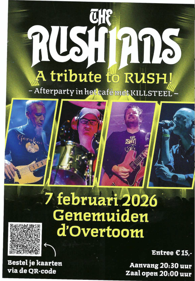 De RUSHians bestaat uit vier vakkundige en ervaren muzikanten met een passie voor Rush. In hun setlist putten de bandleden uit het complete oeuvre van Rush, en dat maakt het voor de bezoekers een bijzondere belevenis. Ze worden getrakteerd op een aaneenschakeling van muzikale hoogtepunten en door juweeltjes die niet altijd live werden gespeeld. De afther party in het cafe van de Overtoom wordt verzorgd door de jonge Genemuiden band Killsteel