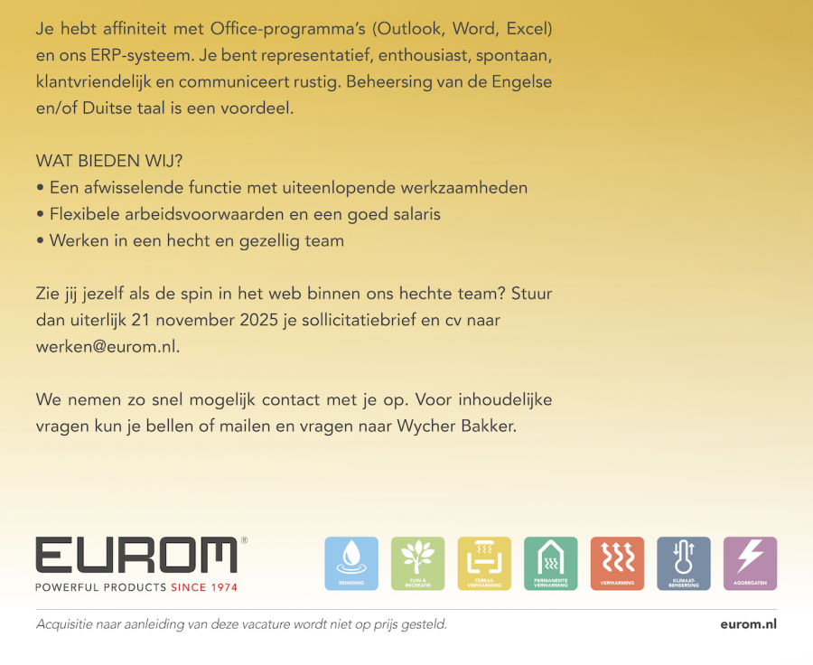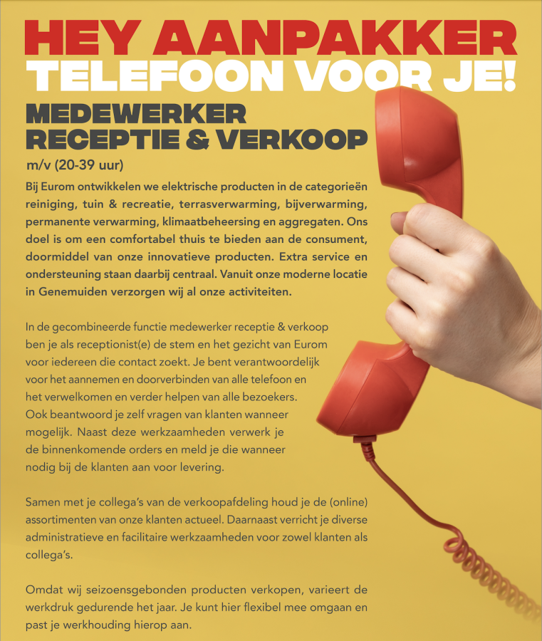 • Vacature : Medewerker Receptie & Verkoop m/v