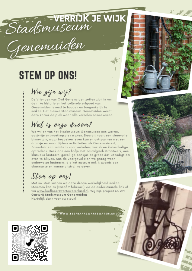 Zoals velen ervaren zullen hebben is er een storing geweest op de stemsite voor Verrijk je wijk. Deze is inmiddels opgelost, maar alle stemmen die vóór woensdagmiddag zijn uitgebracht zijn ongeldig verklaard en moeten opnieuw worden uitgebracht. Graag roepen de Vrienden van Oud Genemuiden u op uw stem zonodig opnieuw uit te brengen op project 29: Gastvrij Stadsmuseum Genemuiden!