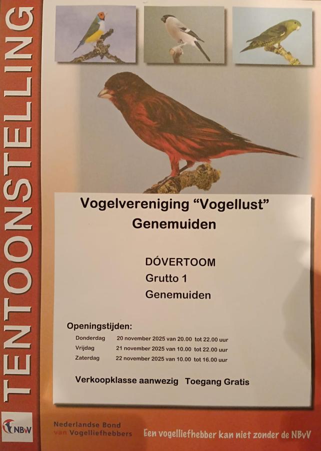 Komend week richt vogelvereniging Vogellust D’ Overtoom weer in voor een aantrekkelijk vogelshow. Vogels vanuit allerlei exotische oorden zullen worden geshowd.