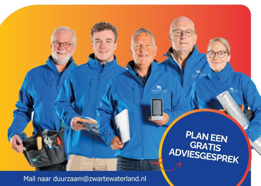 Voordat u begint, is het slim om te weten wat wel en niet kan in uw woning. Daarom bieden wij iedere woningeigenaar in onze gemeente een gratis energieadviesgesprek aan. Tijdens dit gesprek krijgt u bouwkundig advies, een overzicht van de kosten en hoe snel maatregelen uitgevoerd kunnen worden. U beslist altijd zelf of u stappen zet. Maak eenvoudig een afspraak via duurzaam@zwartewaterland.nl of bel 14 038. Ons team Duurzaam staat voor u klaar om uw vragen te beantwoorden.