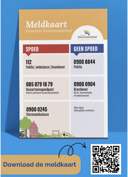 “Precies dat is wat de politie en gemeente willen bereiken: niet wegkijken, maar handelen”, legt Renate ten Hove van team Veiligheid van de gemeente Zwartewaterland uit. “Mensen voelen vaak wel dat er iets niet klopt, maar de stap om daadwerkelijk te melden is groter.”“Met deze actie, proberen we de meldingsbereidheid van onze inwoners te vergroten. Naast deze actie doen we dat ook op andere manieren. Zoals het geven van voorlichtingsavonden. Of met onze meldkaart die elke inwoner kan ophalen op het gemeentehuis of bij de bibliotheek. Downloaden op zwartewaterland.nl kan uiteraard ook”, aldus de Renate ten Hove.