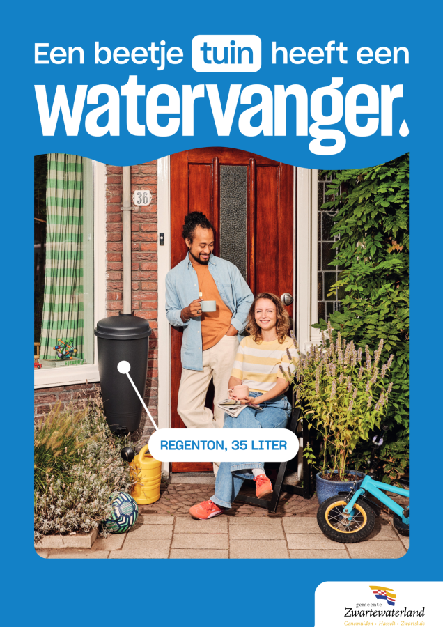 Koop een regenton, profiteer van de klimaatsubsidie Steeds vaker krijgen we te maken met hoosbuien en langere droge periodes. Dat merken we ook in onze eigen tuin. Soms valt er in korte tijd veel regen, terwijl planten later juist water tekortkomen. Door regenwater op te vangen kunt u daar zelf iets aan doen. Met een regenton, ook wel een watervanger, houdt u regenwater vast voor droge tijden. De gemeente Zwartewaterland helpt inwoners daarbij met een klimaatsubsidie.Een watervanger is eigenlijk heel eenvoudig: een plek waar regenwater tijdelijk wordt opgevangen. Dat kan een regenton zijn, maar ook een wadi of andere voorziening in de tuin. Vooral een regenton is een makkelijke eerste stap. U vangt regenwater op van het dak van uw huis of schuur en gebruikt dit later om planten water te geven.