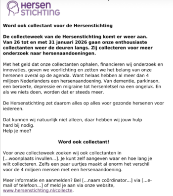 Ivm afzeggingen van collectanten zoeken we nog mensen die willen helpen collecteren Telefoonnummer 0618274757 ... [...]