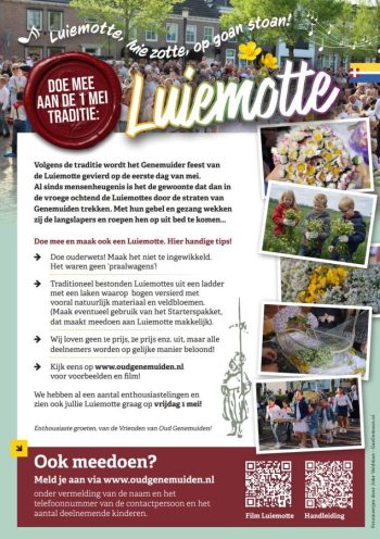 GENEMUIDEN – Groepen die mee willen doen aan Luiemotte kunnen nog tot en met 15 april een starterspakket aanvragen. Zo’n pakket maakt meedoen aan de Genemuider traditie een stuk eenvoudiger. Stichting Vrienden van Oud Genemuiden probeert met het starterspakket de animo voor Luiemotte verder te vergroten. Dat lukte vorig jaar prima. Toen liepen ... [...]